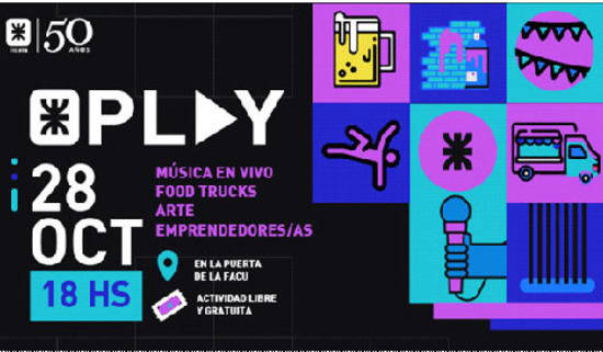 El festival UTN PLAY es una actividad gratuita a la que está invitada toda la comunidad. Se trata una propuesta en el marco de las celebraciones por el 50º Aniversario de la creación de la UTN Facultad Regional Delta.