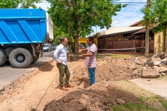 El intendente Sebastián Abella estuvo presente en el lugar para observar el progreso de la obra y conversar con los vecinos, que se mostraron contentos con el inicio de los trabajos y agradecieron las mejoras en el barrio.