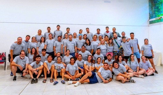 LOS MÁS DE 70 PROFESORES DEL STAFF DE LA COLONIA POSARON CON SUS REMERAS JUNTO AL INTENDENTE ABELLA