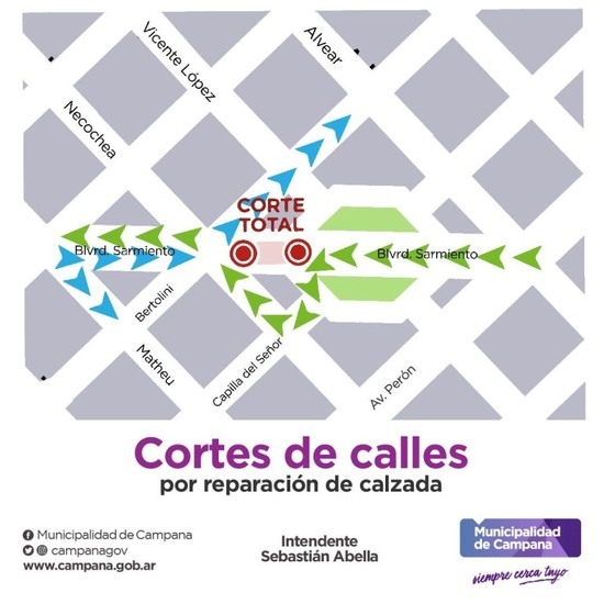 La Dirección General de Tránsito y Transporte del Municipio informa que estará restringido el tránsito vehicular en boulevard Sarmiento y Bertolini por reparaciones de la calzada.