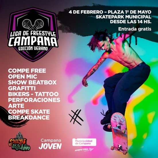 Con entrada libre y gratuita, este sábado, a partir de las 14, Campana Joven realizará el 2° encuentro de la Liga de Freestyle -edición verano- en el Skatepark de la plaza 1° de Mayo.