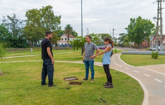 Abella junto a su equipo analizaron el sistema de riego del espacio público.