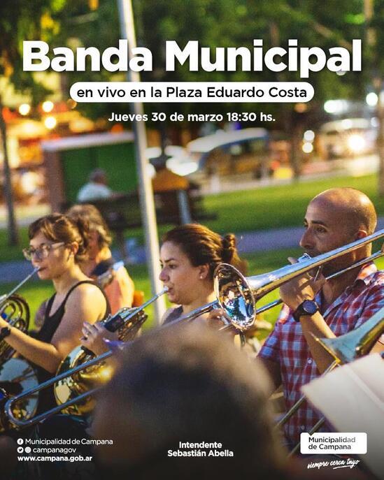 La Banda Municipal tocará este jueves en la Plaza Eduardo Costa.