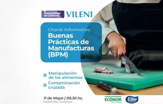 El próximo jueves 11 de mayo, desde las 9:30, en las instalaciones del Centro Educativo Municipal (Castelli 562), se llevará adelante una charla informativa sobre Buenas Prácticas de Manufacturas (BPM), con la organización conjunta entre la Dirección General de Calidad Ambiental, Bromatología y Zoonosis del Municipio y la empresa Vileni.
