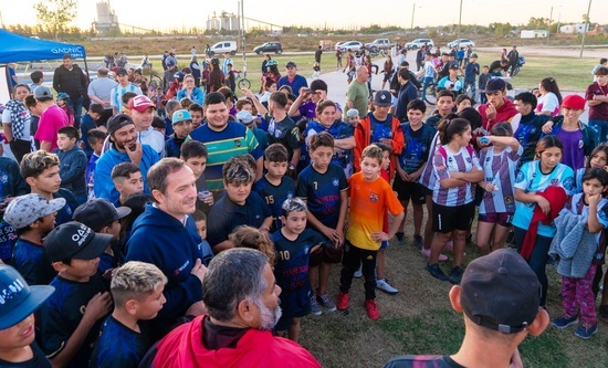 Posteriormente compartió una merienda con los cientos de chicos y chicas que juegan fútbol en estos tres clubes y que, prontamente, podrán hacerlo en las nuevas canchas que se están construyendo.