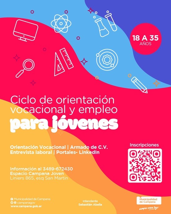 Este miércoles 31, finaliza el ciclo gratuito de Orientación Vocacional y Empleo impulsado por el Municipio que tiene como principal objetivo brindar a los jóvenes campanenses herramientas que les permitan reflexionar y evacuar dudas en el importante paso de elegir una carrera de estudio o bien prepararse para el mundo laboral.