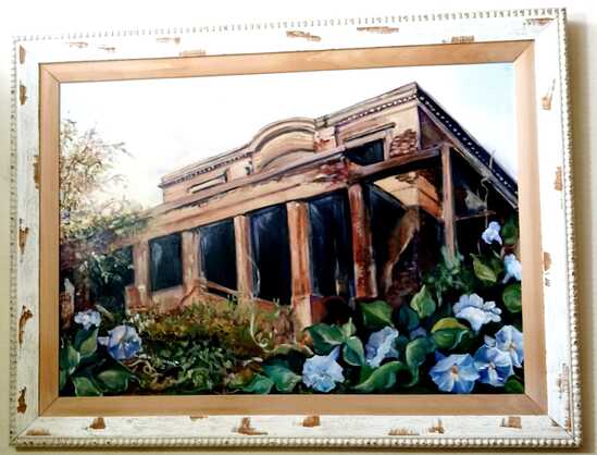 Todavía no eran las máquinas digitales a las que estamos hoy acostumbrados, asi que si el rollo era color se revelaba en los laboratorios de Foto Gaby, Foto Henry o en Fotoproducciones . Pero si el rollo era blanco y negro lo hacía en el laboratorio de La Auténtica Defensa, con ayuda de Bocha Iglesias, Guillermo Guasconi o Pancho Miner. Fue por aquellos días que logré unas lindas tomas de la vieja casona, desde abajo de la barranca, y una en especial fue del agrado de Mónica, mi esposa, que años más tarde plasmó en un cuadro al óleo que aún hoy está colgado sobre la escalera de mi casa. Una obra de gran tamaño que es para mí de un valor incalculable. Recuerdo que en noviembre de 2005 unos amigos extranjeros nos visitaron y al ver el cuadro sobre la escalera me consultaron de quien era esa casa. Entonces los llevé hasta la barrera de Colón y Alem, ya que desde allí podía apreciarse la fachada asomarse entre la frondosa vegetación. Cuando la vieron, rápidamente me expresaron su pena por el estado calamitoso en que se encontraba (una ruina) y lo raro que no se hubiere preservado como museo o ícono histórico de la ciudad.