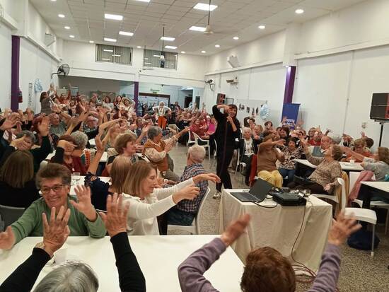 La disertación contó con la intervención de dos alumnas de su taller: la kinesióloga Diana Bossoni y la psicóloga Rina Magrini, quienes destacaron los beneficios de las actividades físicas que repercuten en lo expresivo y creativo.