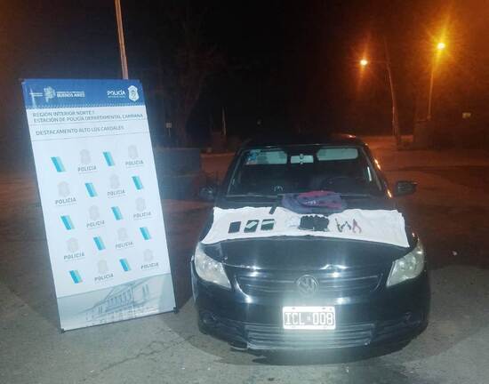 Finalmente, advirtieron a un auto VW Voyage escapar de la zona, pero en coordinación con otros móviles policiales lograron su detención sobre Ruta 4, a la altura de la calle Los Paraísos.