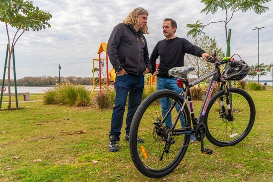 El intendente Sebastián Abella acompañó este lunes por la tarde la donación de dos bicicletas por parte del comerciante "Miye" de Moto Star al personal de seguridad que opera en la Nueva Costanera.