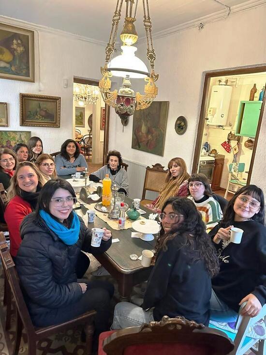 Como parte de la propuesta, también visitaron el atelier de Ezio Mollo, situado en la calle Almirante Brown, que presenta una gran cantidad de pinturas al óleo con el acompañamiento de su hermana Élida Mollo .