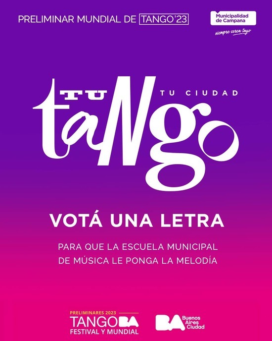 El plazo para participar del concurso “Tu Tango, Tu Ciudad" vence este viernes 14, a las 21. Los vecinos pueden participar a través del Facebook del Municipio, dándole like (me gusta) en la foto con la letra que más les guste.