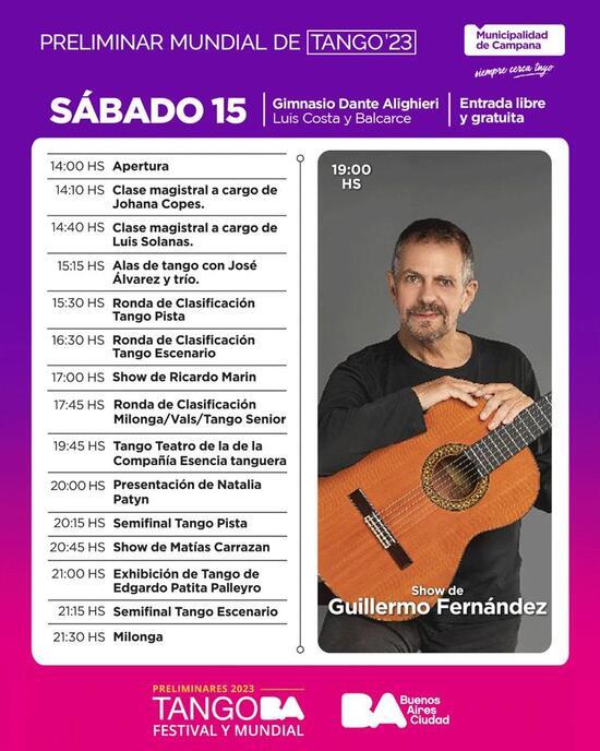 Ricardo Marín se presentará el sábado a las 17 y Guillermo Fernández a las 19; mientras que el grupo musical “Amores Tangos" lo hará el domingo a las 17:30 y Cecilia Milone a las 19.