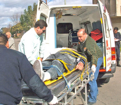 Los bomberos Dorregaray y Lauque, se encargaron de inmovilizar el brazo de la victima que fue el que sufrió las peores consecuencias del accidente, y condujeron a la victima al hospital San José en el móvil 34.