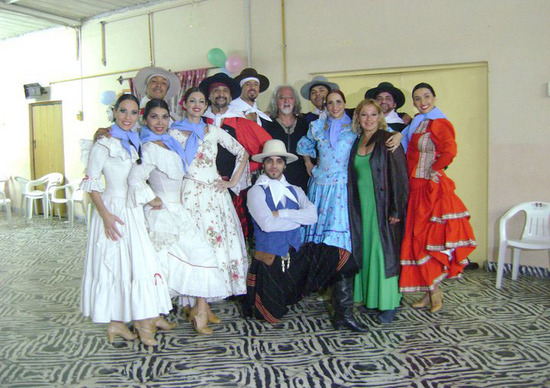 ex bailarines del Ballet de El Chucaro y el Ballet Nacional reunidos para homenajear a Santiago Ayala aqui junto a Juan Savedra.