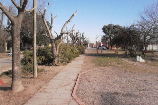 Por su parte, la Cooperativa "7 de Mayo", coordinada por el capataz Pablo Aranda e integrada por cuatro cooperativistas más, efectuó la poda correctiva de árboles, corte de pasto en la plaza del barrio 9 de Julio y desmalezamiento en zanjas y zanjones.