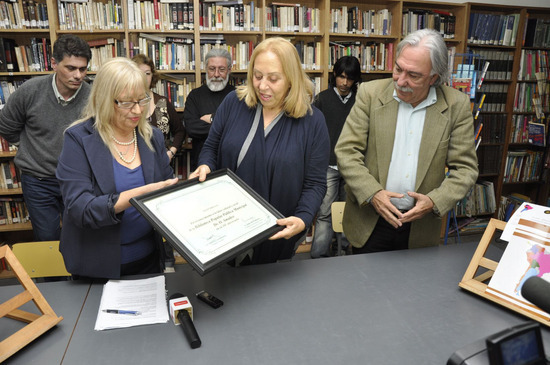 La Coordinadora General de la Biblioteca Marta Magistratti mostró la distinción a la Jefa Comunal y a los presentes.