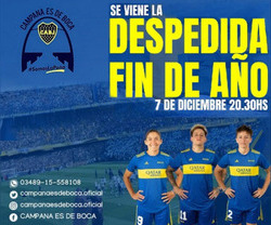 La Peña ”Campana es de Boca” despide el año con una gran fiestaSerá el miércoles 7 en la Sociedad de Fomento del Barrio Del Pino. Participarán el Departamento de Interior y Exterior del club, la murga "Los Amantes de La Boca" y jugadoras de "Las Gladiadoras". Además, habrá sorteos y muchas otras sorpresas para los simpatizantes ...