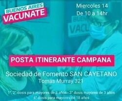 En el marco del Plan Vacunate, se aplicarán dosis para completar esquemas en la Sociedad de Fomento del Bº Lubo. "No debemos relajarnos, y por ello vamos en busca de aquellos vecinos y vecin...