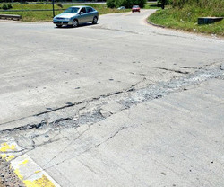 Peligrosa rotura de pavimento sobre la Ruta 6